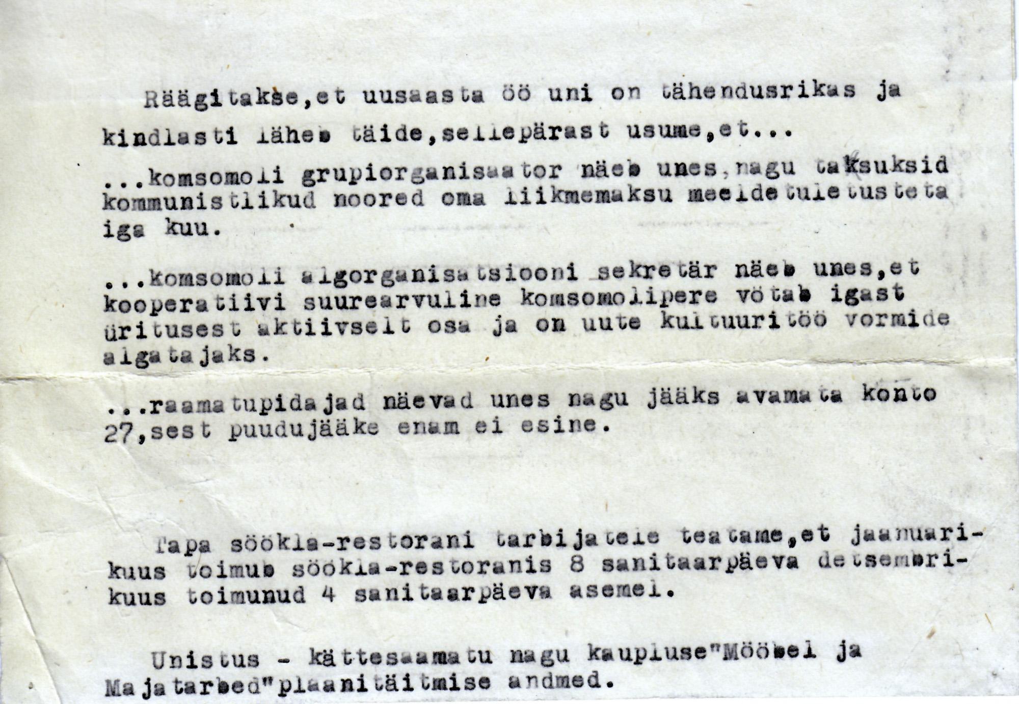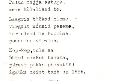 Hakati ellu viima punavõimu kohustuslikke propagandaüritusi. Otsustati panna nähtavale kohale NSVL Ülemnõukogu valimiste määrustik ja ENSV Konstitutsioon, sotsialistliku ühistegevuse idee propageerimiseks tellida vastavat kirjandust, luua ühistu ruumides punanurk jm.