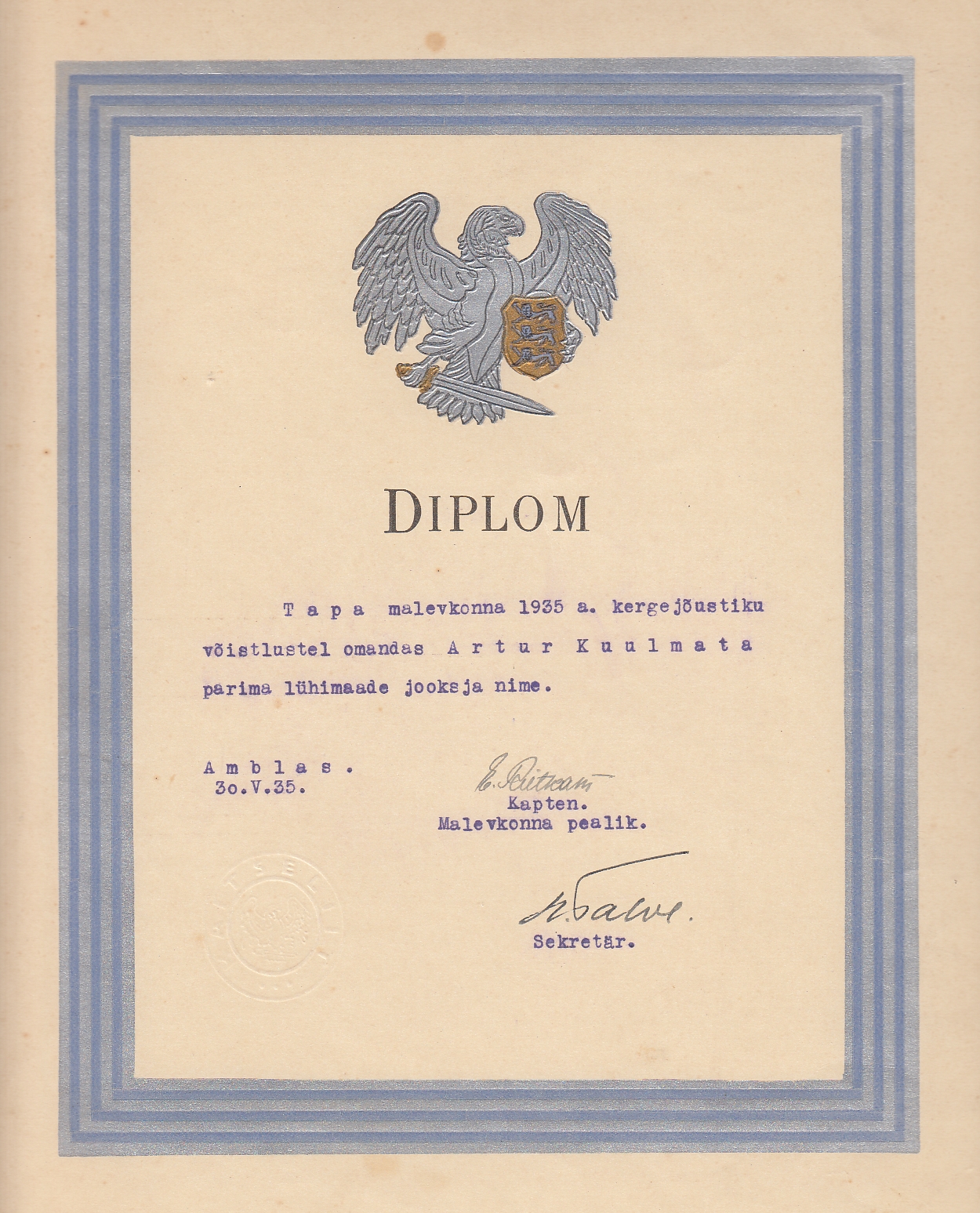 Väike sissejuhatav veebinäitus on pühendatud Järvamaa Kaitseliidu Tapa malevkonna liikmele ja tublile spordimehele Artur Kuulmata`le.